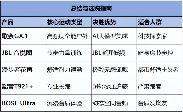 运动耳机的核心从来不是多华丽的参数,而是能在你挥汗如雨的时候不掉、不坏、够实用。这五款都是我实打实用了一两个月的心头好,根据自己的核心需求选,基本是没错的~
